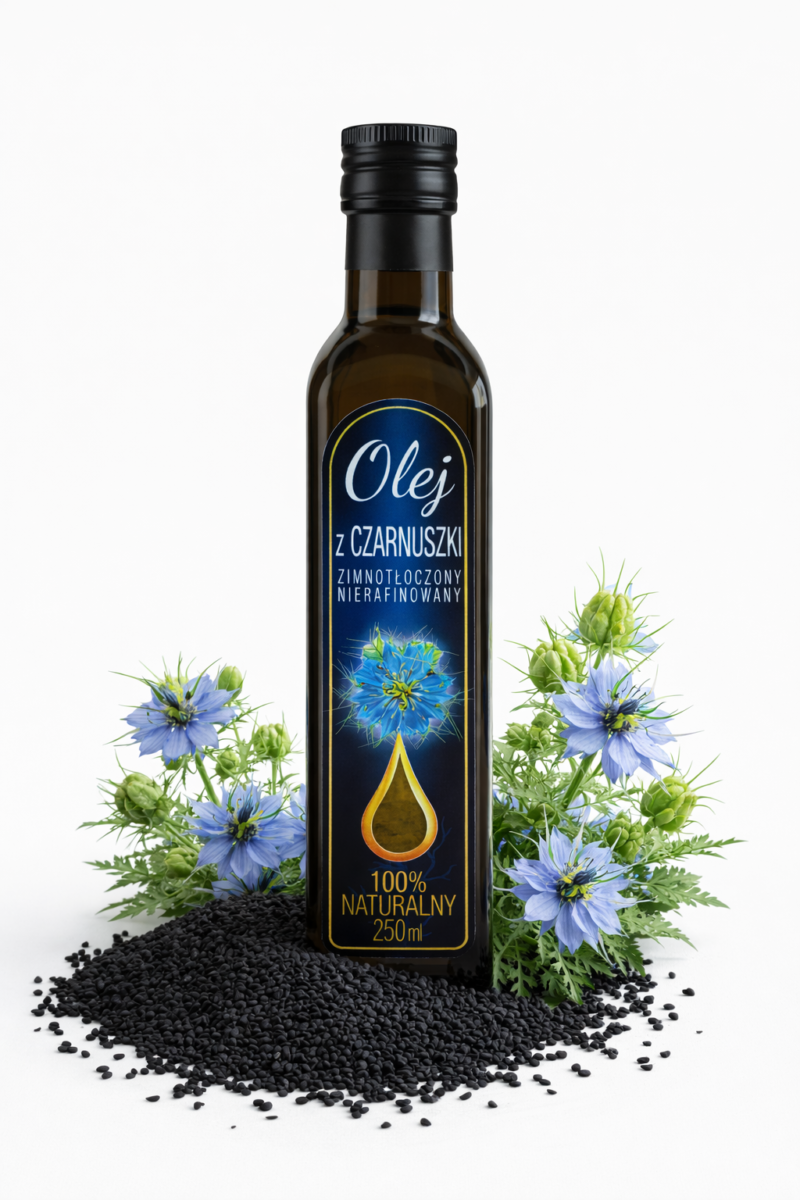 Olej z czarnuszki (Nigella sativa) tłoczony na zimno